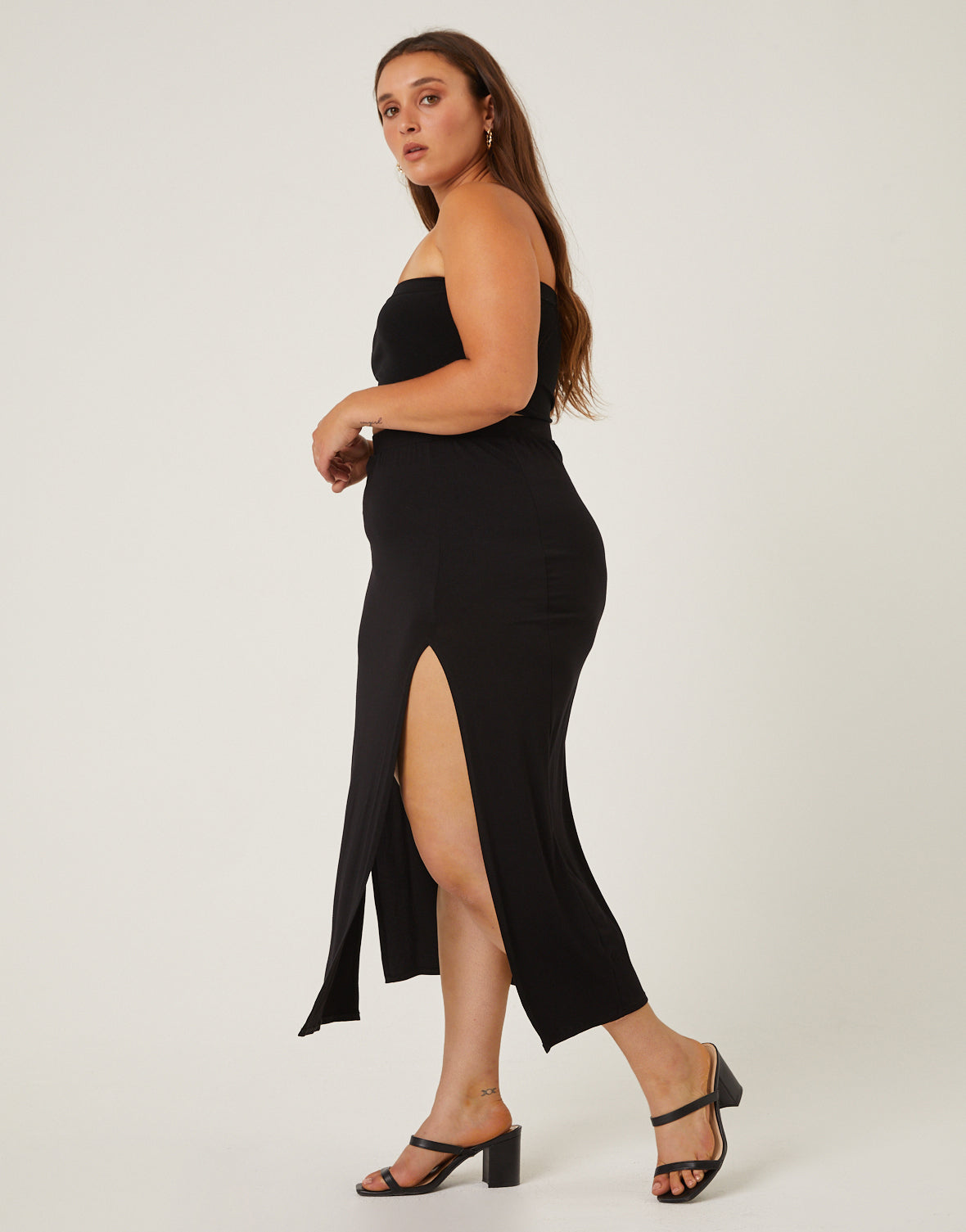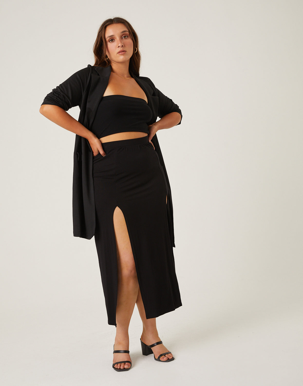 The?Plus Size Double Slit Midi Skirt is a simple wardrobe piece you'll find yourself reaching for again and again. This statement?plus size skirt is simple enough to pair with everything but trendy enough with the double slits to be a statement piece in any outfit. Pair it with a for a sultry nighttime outfit.