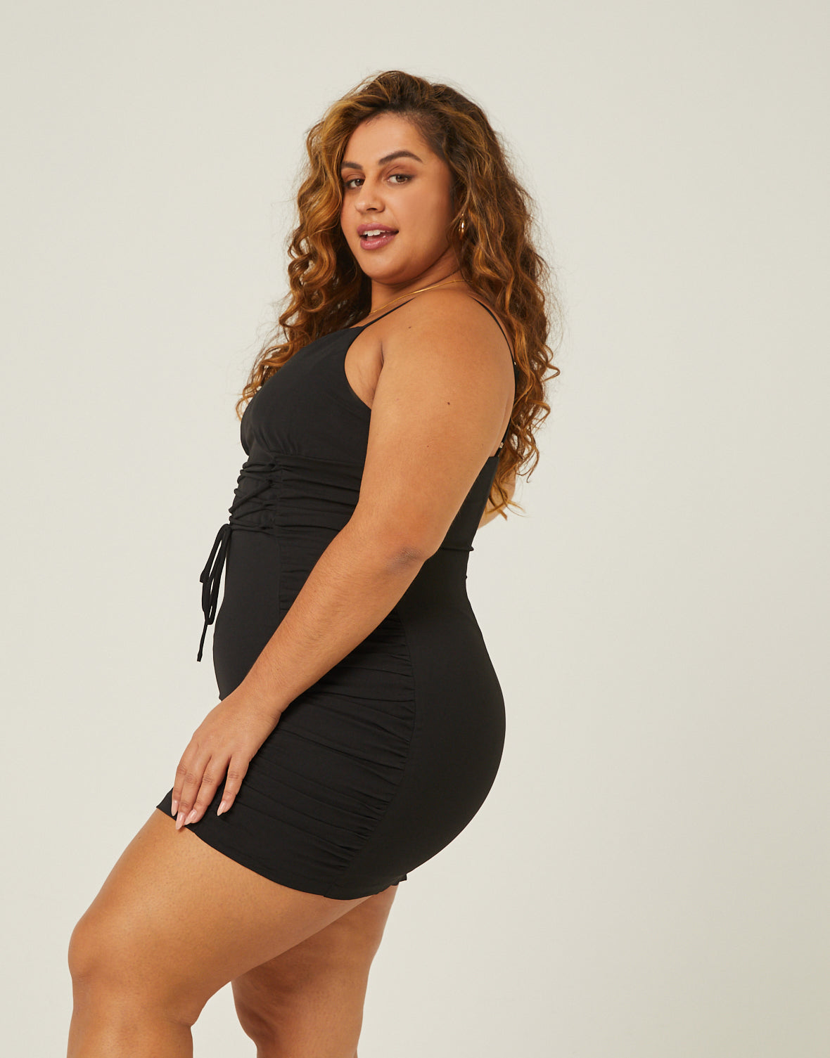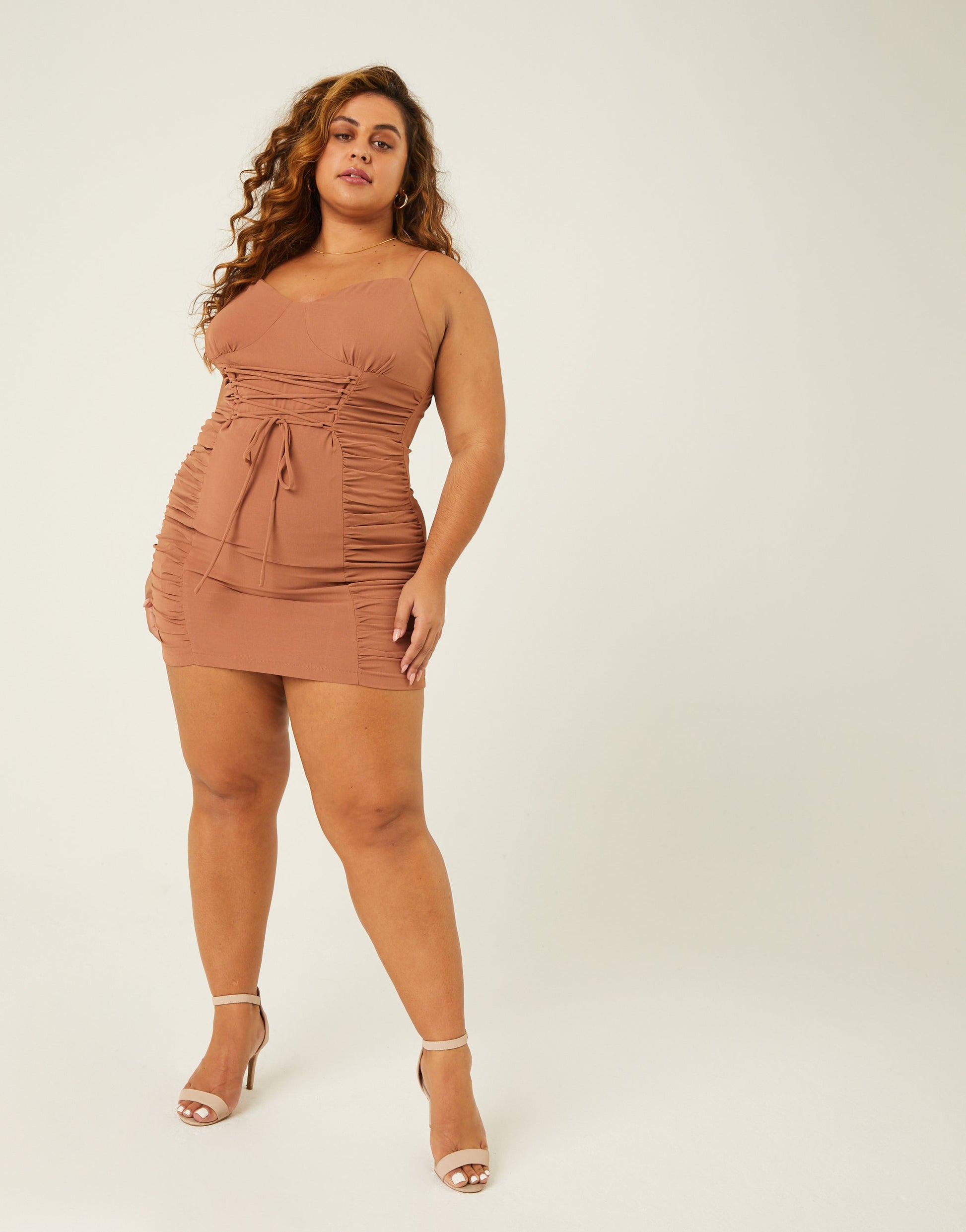 ?The party dress you never knew you needed, the Curve Lace Up Ruched Mini Dress is a mini dress you'll need in your life.