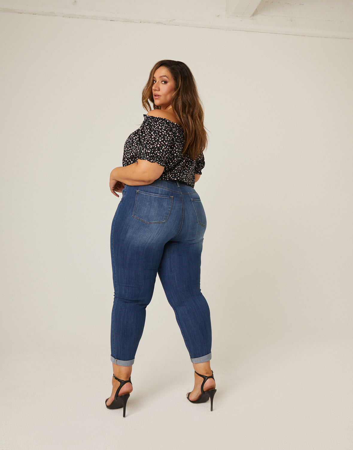 Plus Size Mid Rise Slim Boyfriend Jeans