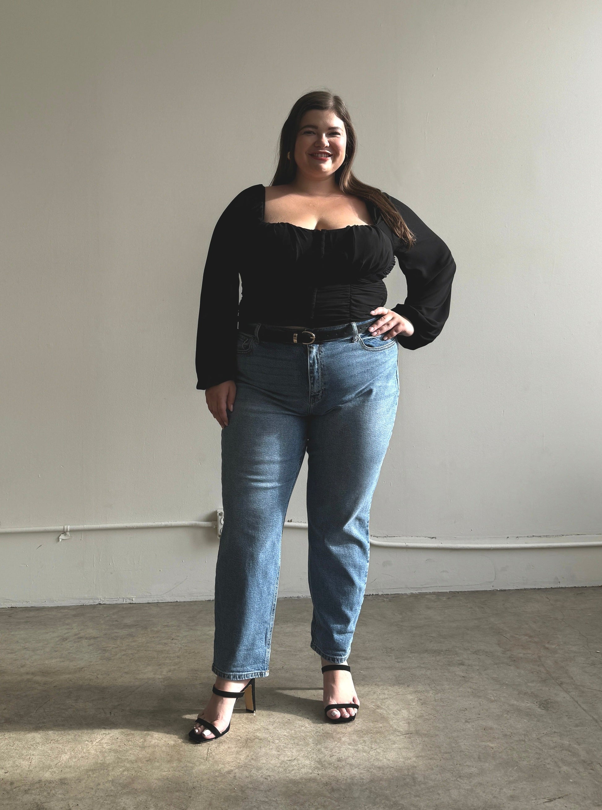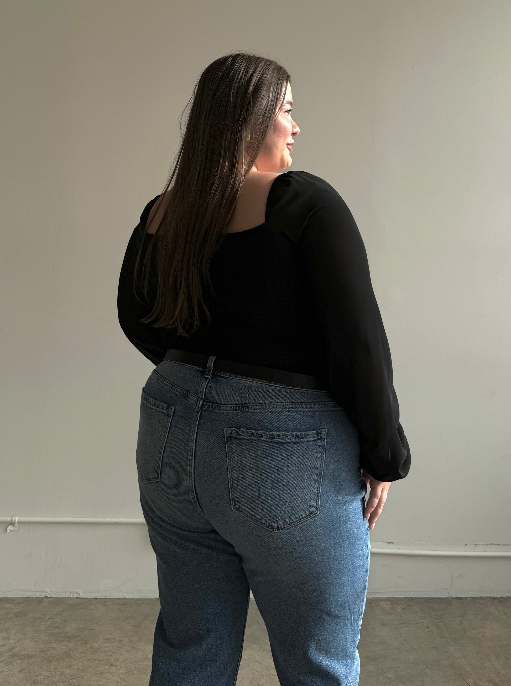 - This top features a corset style, long sleeves, a square neckline, padded cups at the bust, and a bodycon fit.