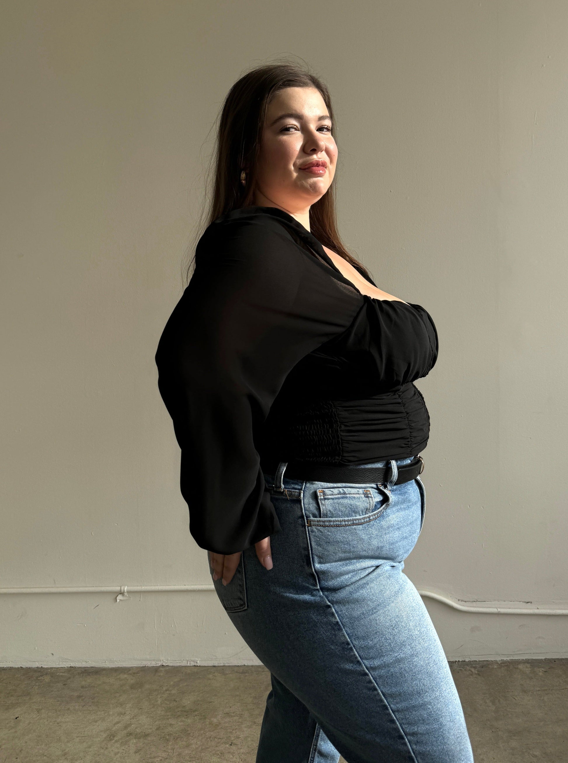 The?Plus Size Long Sleeve Bustier Crop Top has an ultra-flattering corset-style design, offering a secure fit that contours your silhouette. Its stretchy fabric ensures a comfortable fit throughout the day, while the unbuttoning clips in the front and the built-in pads on the bust enhance its?trendy aesthetic.?