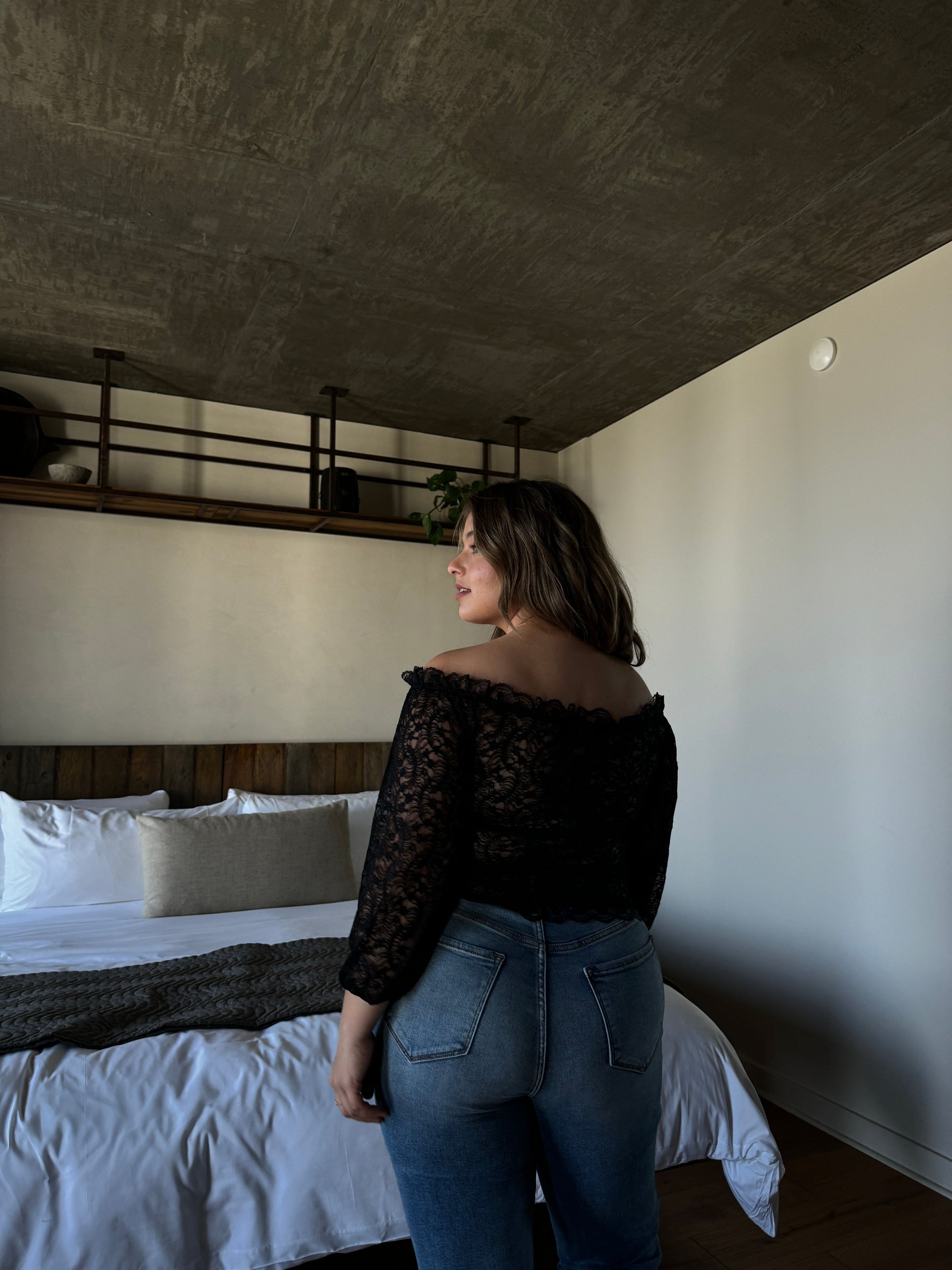 Lace pattern. Has good amount of stretch.? Details on the fringe.