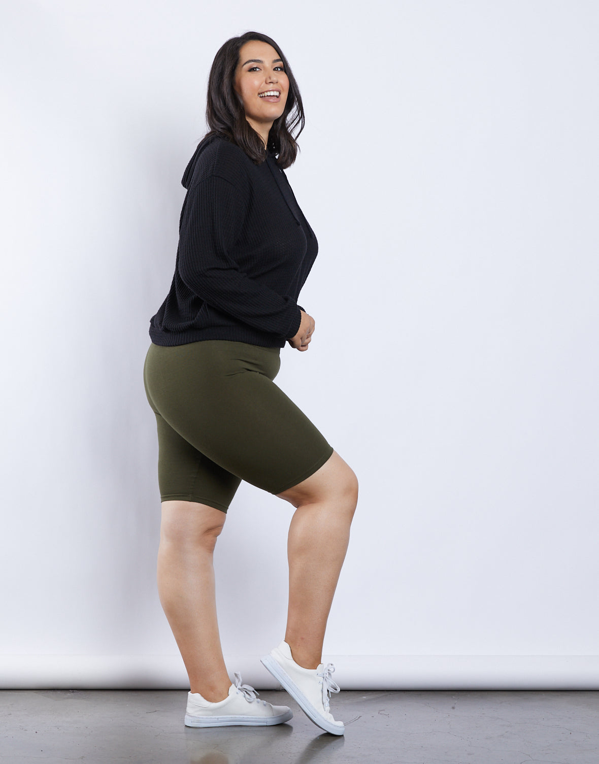 Meet?your not-so-basic wardrobe essential -?the Curve Simple Bike Shorts. These elastic shorts are made of a lightweight fabric, featuring a?mid-rise and above the knee fit.?Channel your inner comfy-chic by styling with an oversized tee and high top sneakers. Looking for more? Pair with a?blazer and a baseball cap for a street style fit. For more colors, check out the .