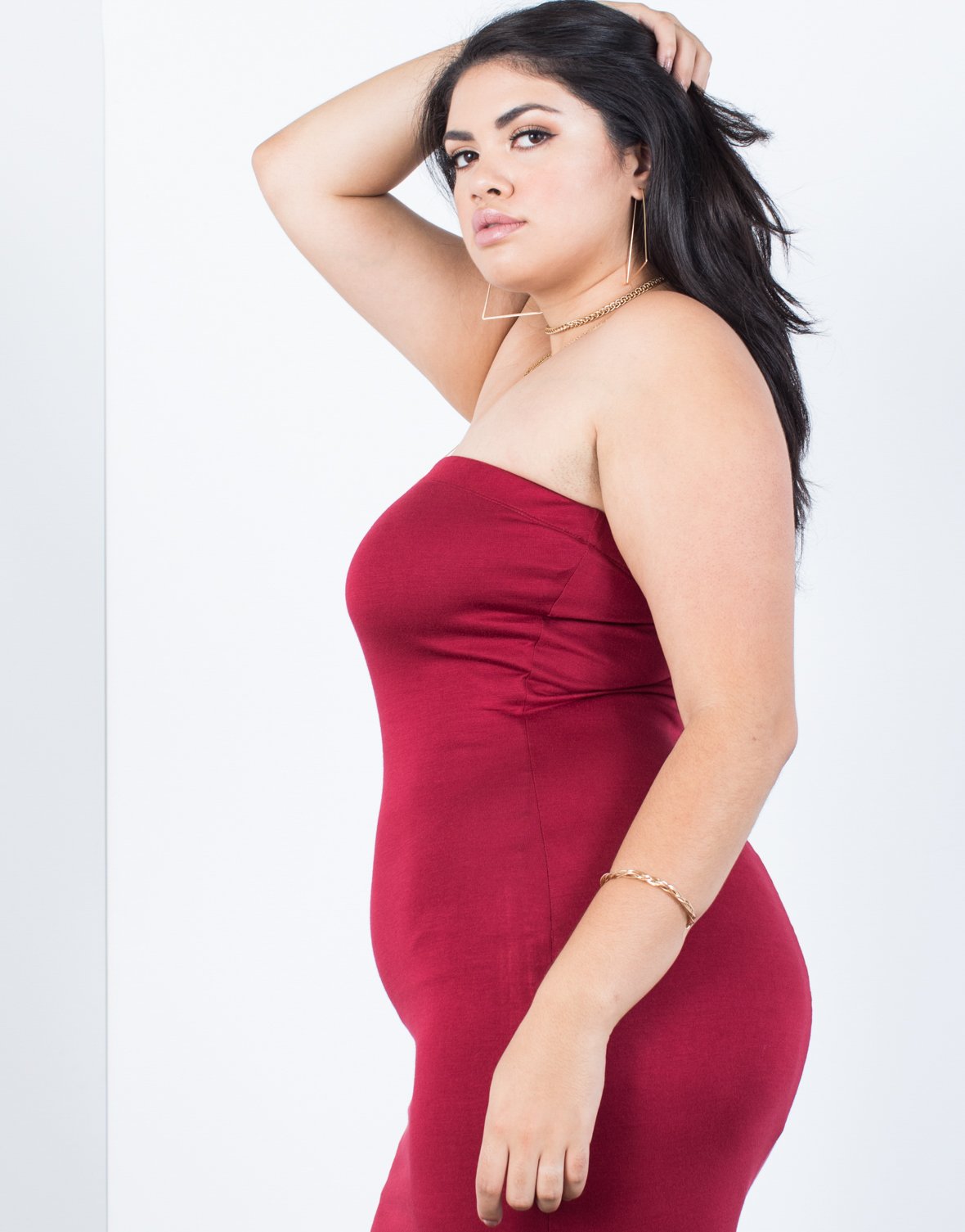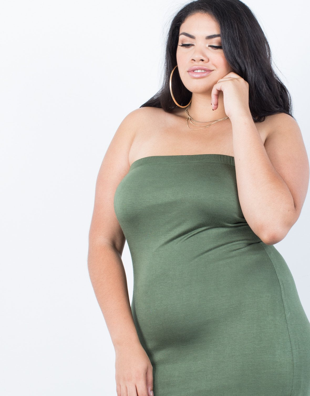 Feel ready for any fun weekend outing with our Curve Strapless Bodycon Dress because of its' effortless style that will look great with any shoes you own! This women's strapless bodycon dress has a stretchy elastic band around the neckline for extra support and a must-have slim-fitting silhouette. We know you will love this amazingly soft and stretchy knit fabric keeping you cool and lightweight from day to night. Feel comfy wherever you go in our burgundy, olive, and black colors. Head out to the city pairing this classic bodycon dress with strappy pearl heels, a destroyed denim jacket, and oversized hoop earrings for a killer girls' night out look!