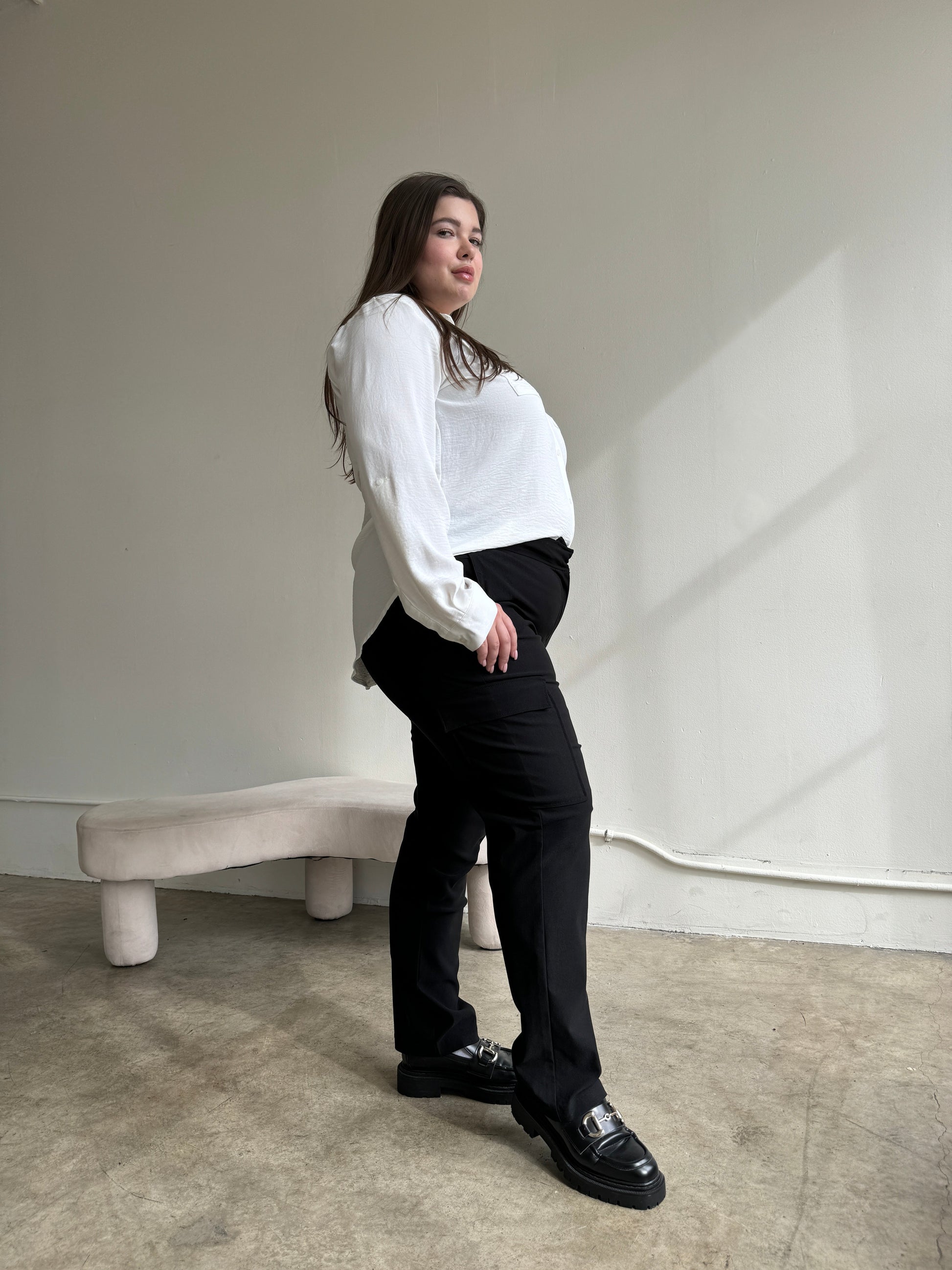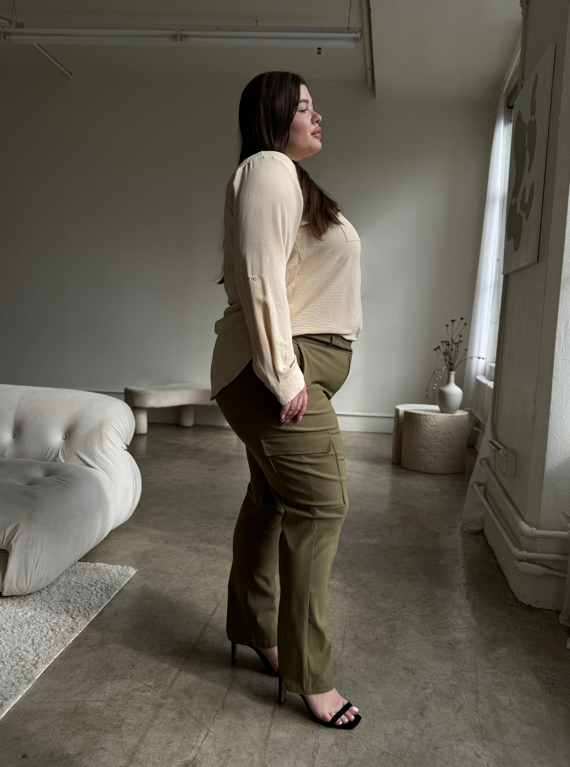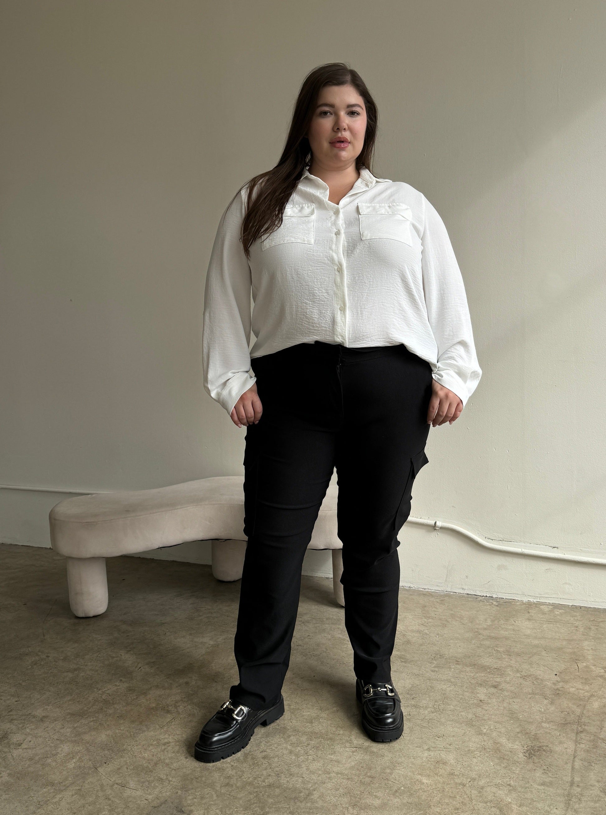 The Plus Size Stretchy Cargo Pants provide a perfect combination of comfort, style, and versatility. The fabric provides ample stretch for every curve and shape, while the four pockets offer plenty of storage. Pair these pants with a casual for an easy outfit you'll love!