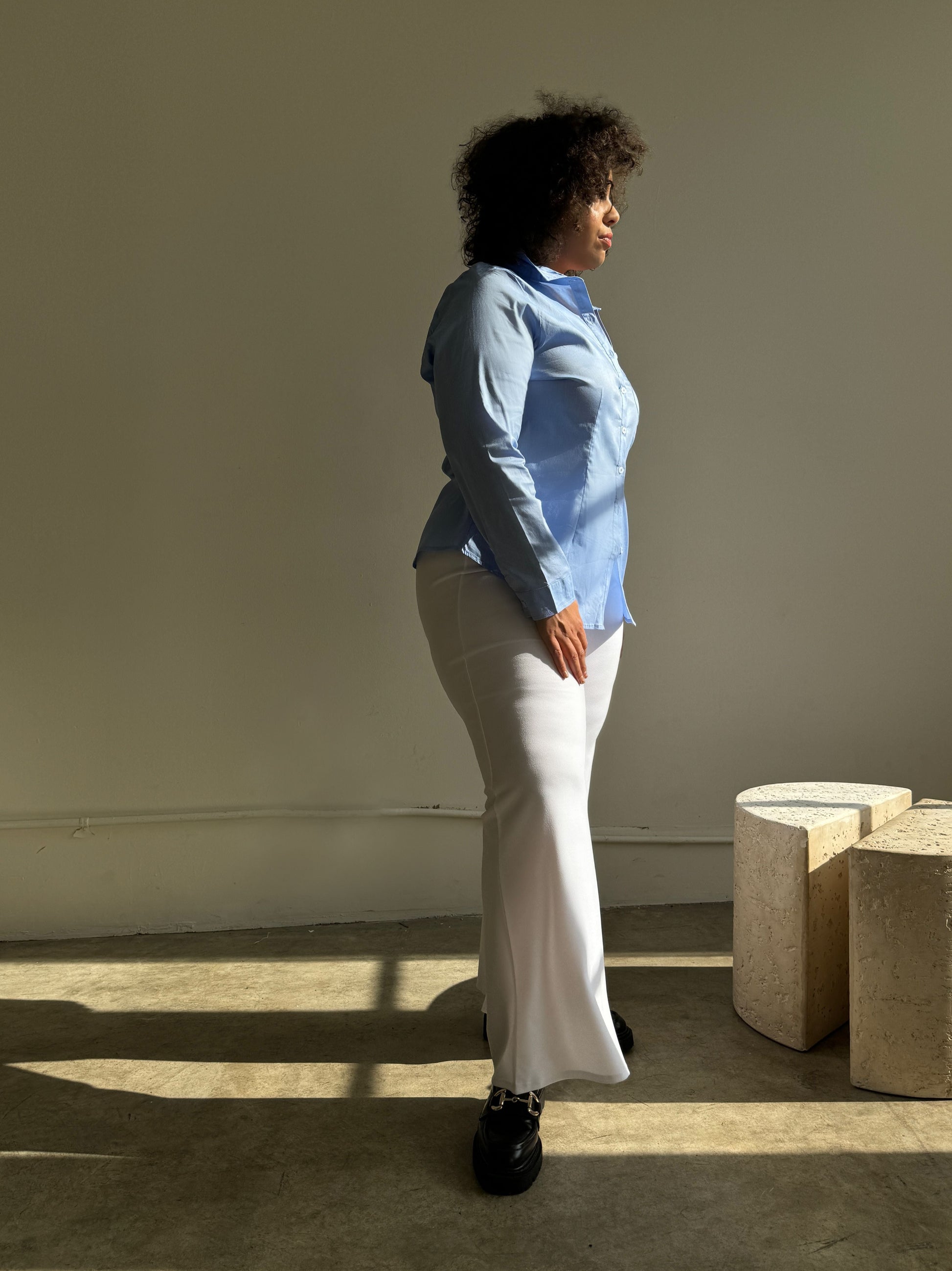 - These pants feature a fitted elastic waist, a wide leg cut, and a full length.